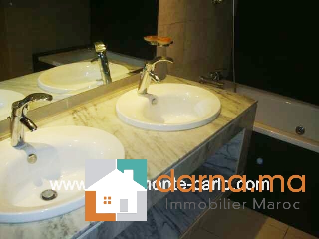 Un bel appartement meublé équipements haut de gamme, d'une superficie de 176 m², dans une résidence fermée, sécurisée ensoleillé et bien aéré à louer dans un quartier calme, composé : double salon avec coin cheminée, terrasse, lave mains invités avec deux vasques, hall, 3chambres avec balcons, bivitrée, cuisine bien équipée avec buanderie, place au garage, ascenseur. Pour plus d’informations ou visite n’hésitez pas de contacter notre agence immobilière Immo Monte-Carlo au N° de tél: +212661464037/ +212661212547ou Tél/Fax: +212537755043 ou par E-mail : Cette adresse e-mail est protégée contre les robots spammeurs. Vous devez activer le JavaScript pour la visualiser. ou visitez notre site www.immomonte-carlo.com ou rendez-vous au 15. Av, Al Abtal N°4, Agdal RABAT MAROC.